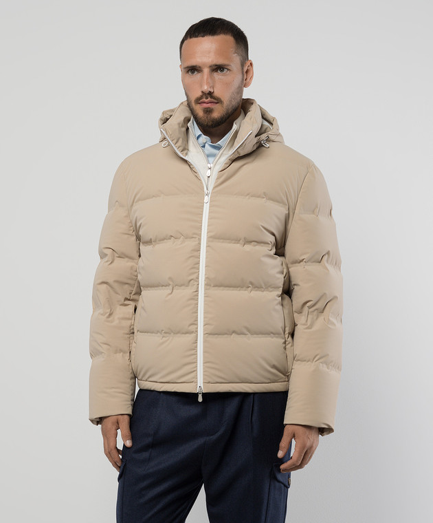 Бежевый стеганый пуховик