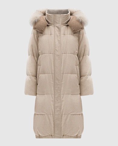 Бежевый стеганый пуховик с вышивкой эмблемы