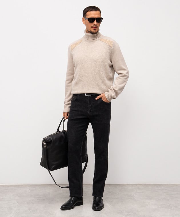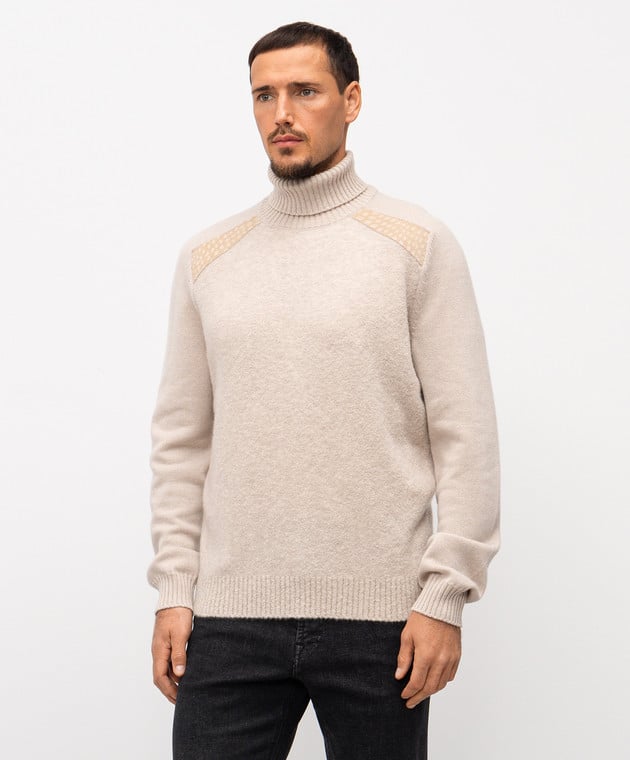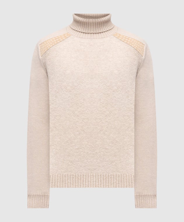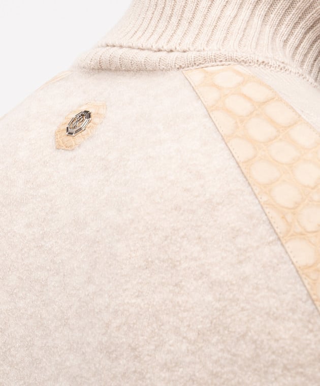 Бежевый свитер из кашемира и шелка с кожей крокодила