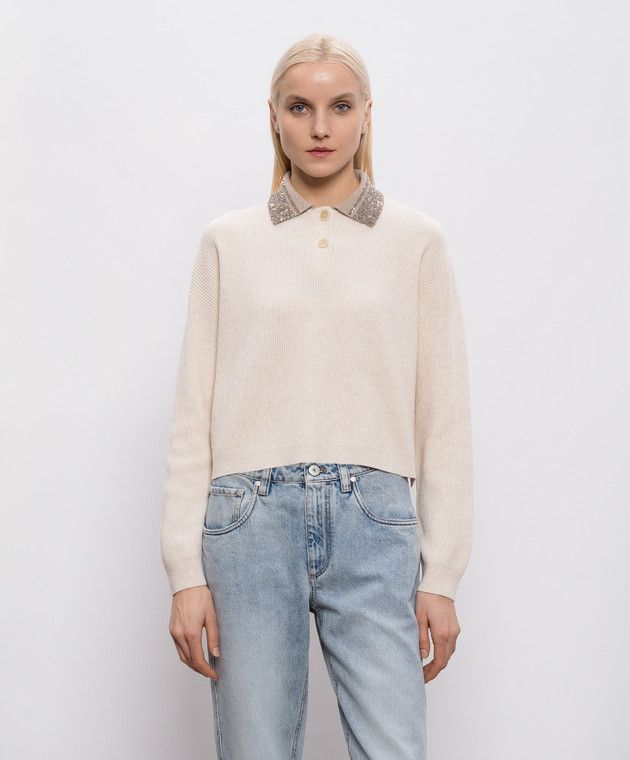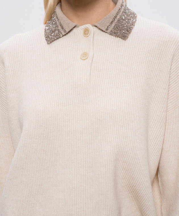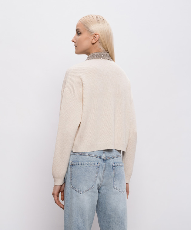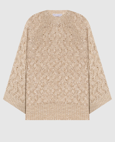 Бежевый свитер из шерсти, кашемира и шелка с пайетками