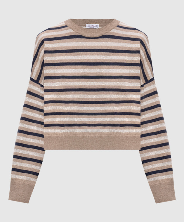 Бежевый свитер из шерсти, кашемира и шелка в полоску