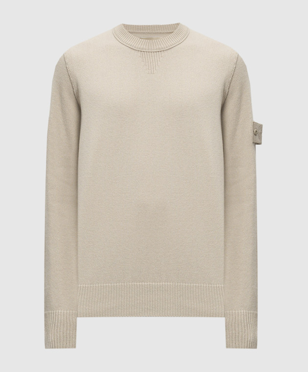 Бежевый свитер из шерсти с патчем логотипа