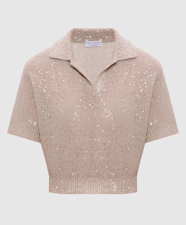 Бежевый топ из льна, кашемира и шелка в пайетке