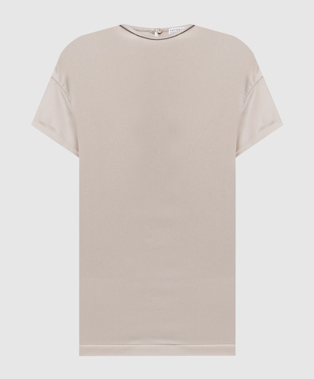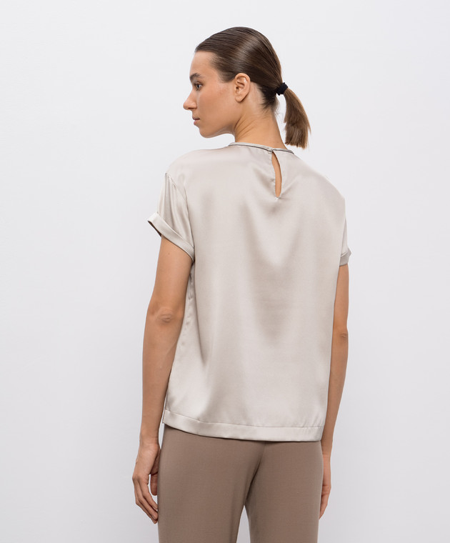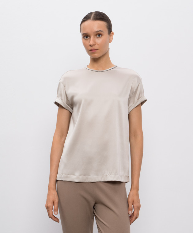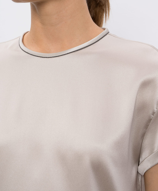 Бежевый топ из шелка с отворотами