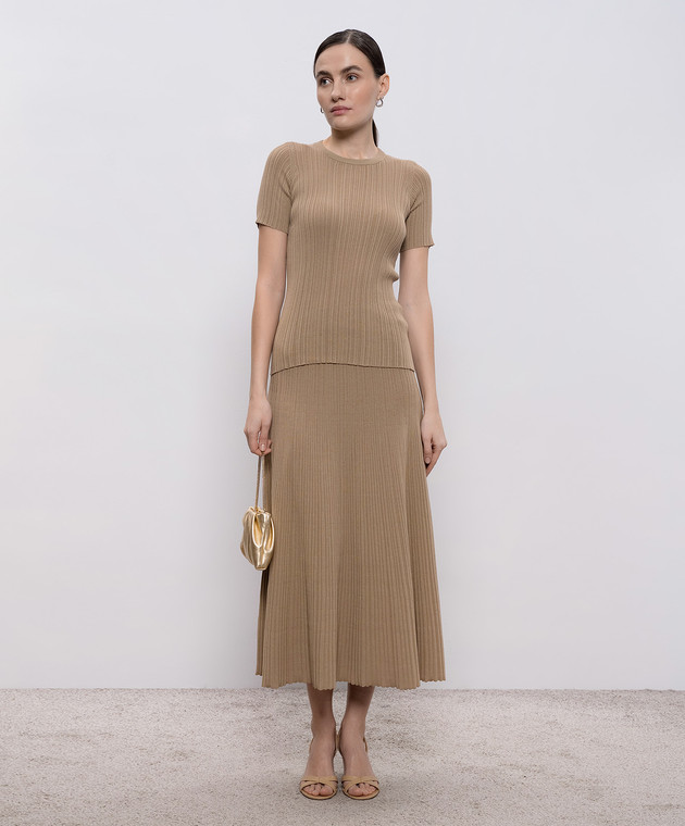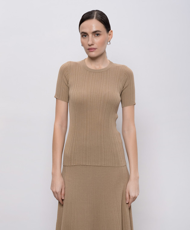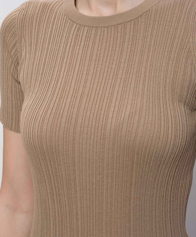 Бежевый топ с шелком в рубчик