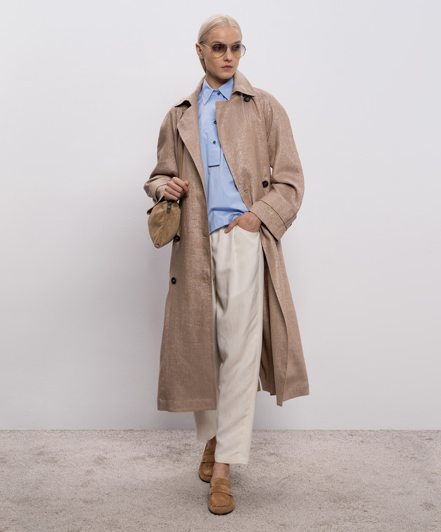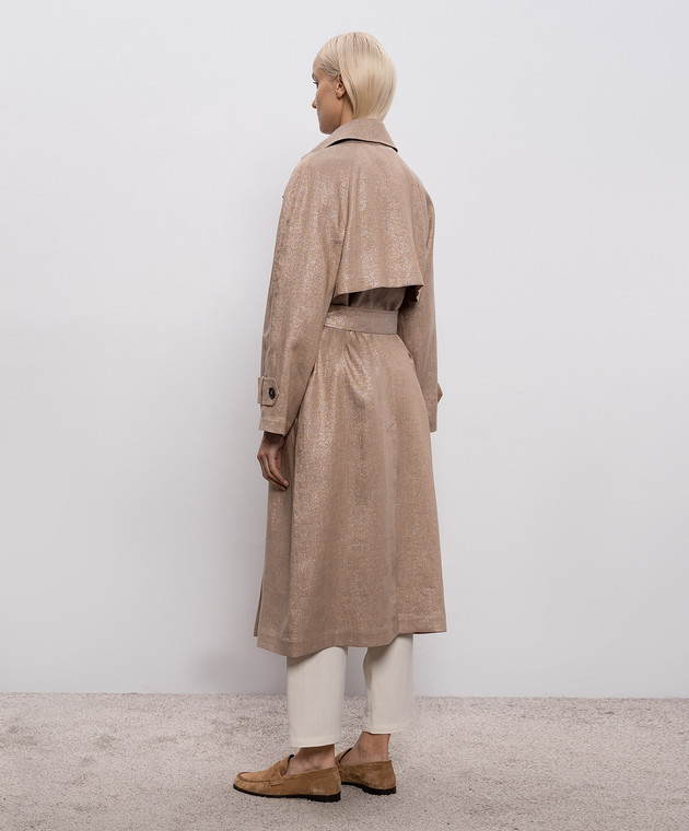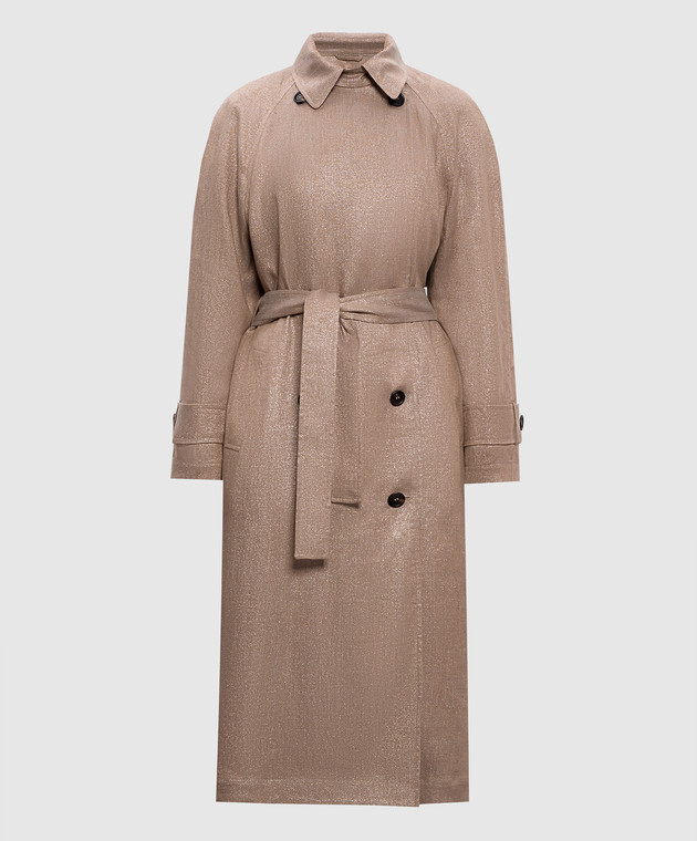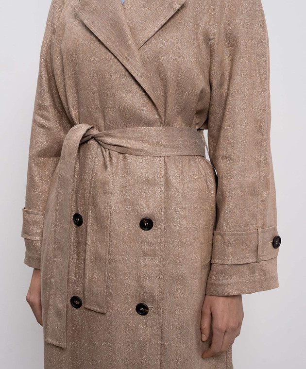 Бежевый тренч из льна с люрексом