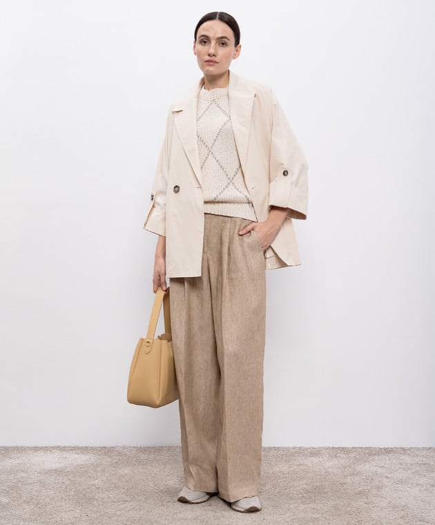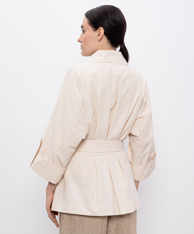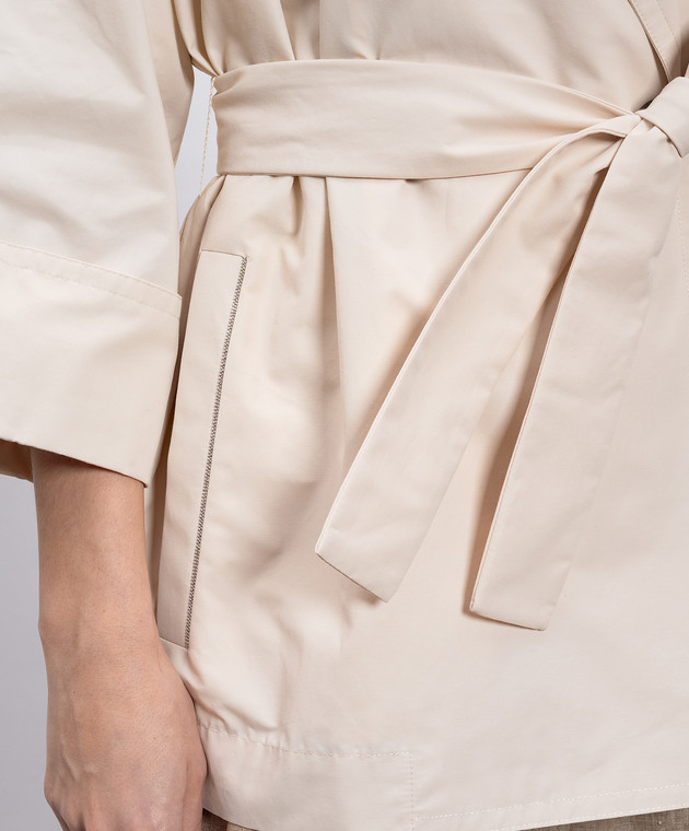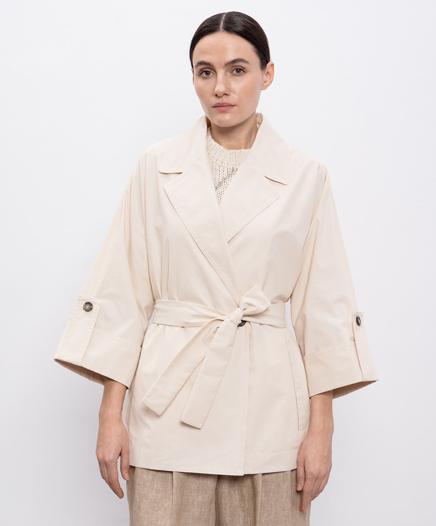 Бежевый укороченный двубортный тренч с цепочкой мониль