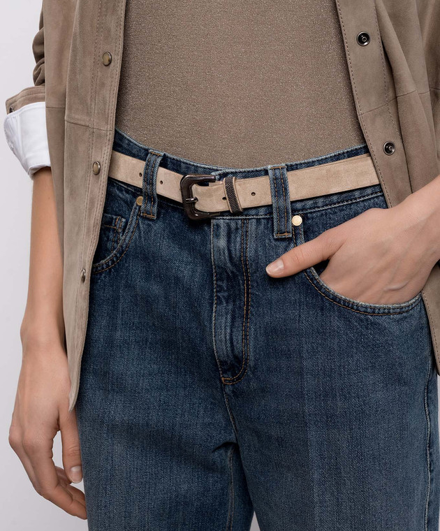 Бежевый замшевый ремень с цепочкой мониль