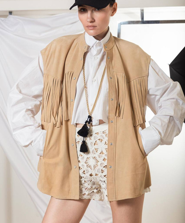 • Декор бахрома, фигурный низ, разрезы в боковых швах, металлический логотип