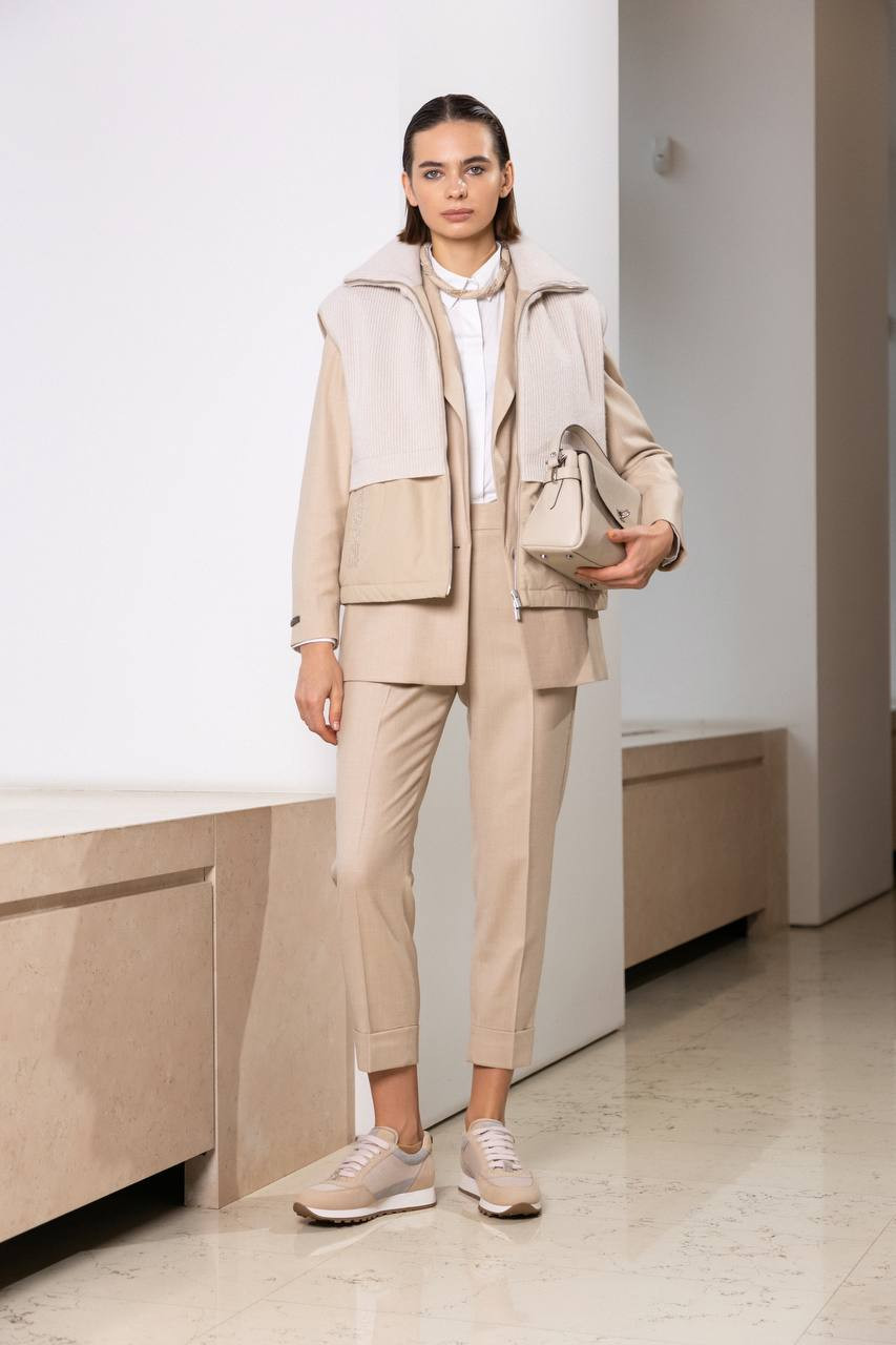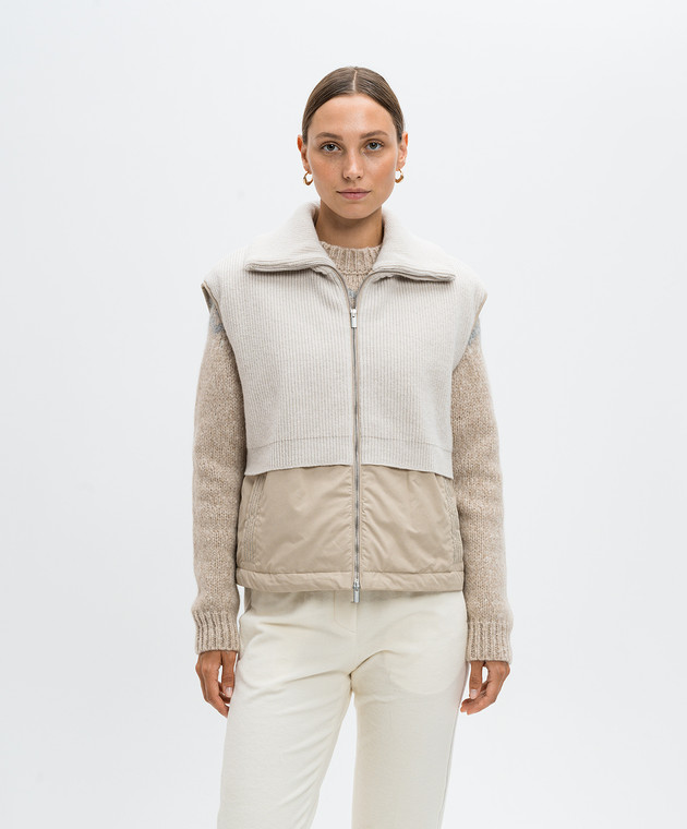 Бежевый жилет с люрексом и цепочкой мониль