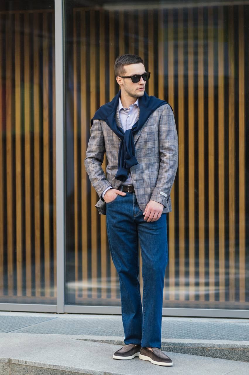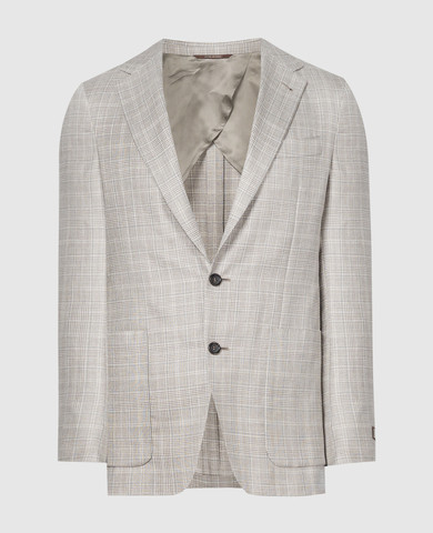 Блейзер в клетку из шерсти, шелка и льна
