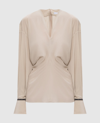 Блуза цвета хаки на запах из шелка