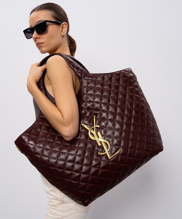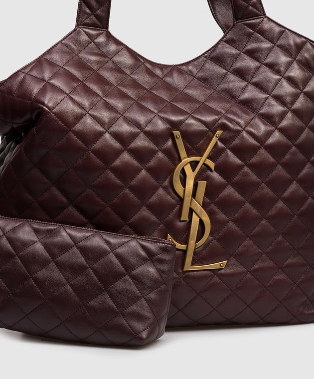 Бордовая кожаная стеганная сумка-тоут ICARE
