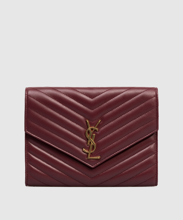 Бордовая кожаная сумка-клатч с монограммой логотипа