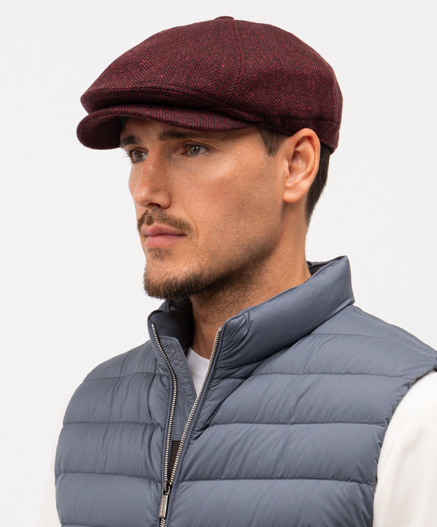 Бордовое кепи из шерсти и кашемира в узор