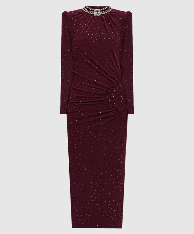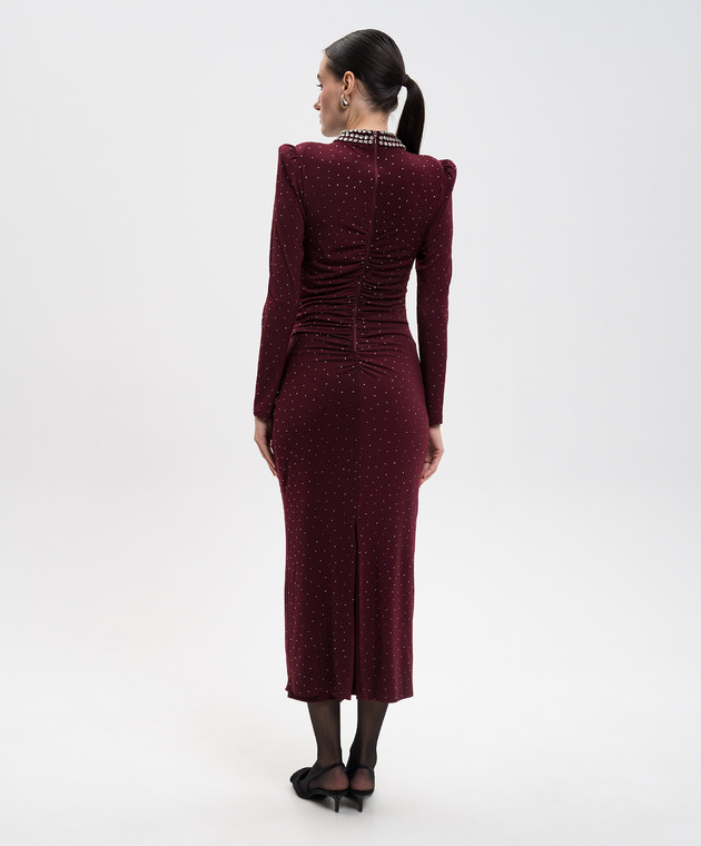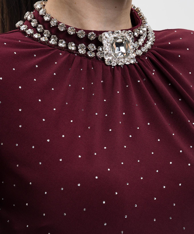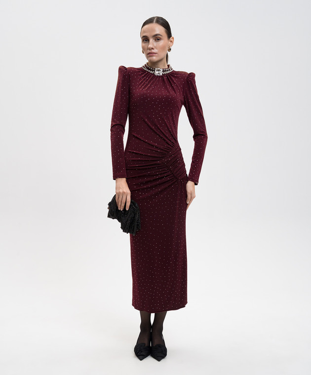 Бордовое платье миди с кристаллами