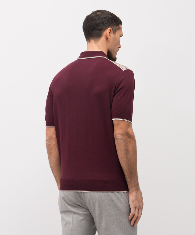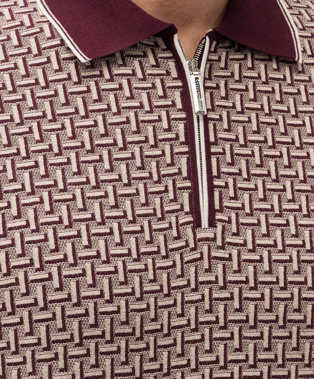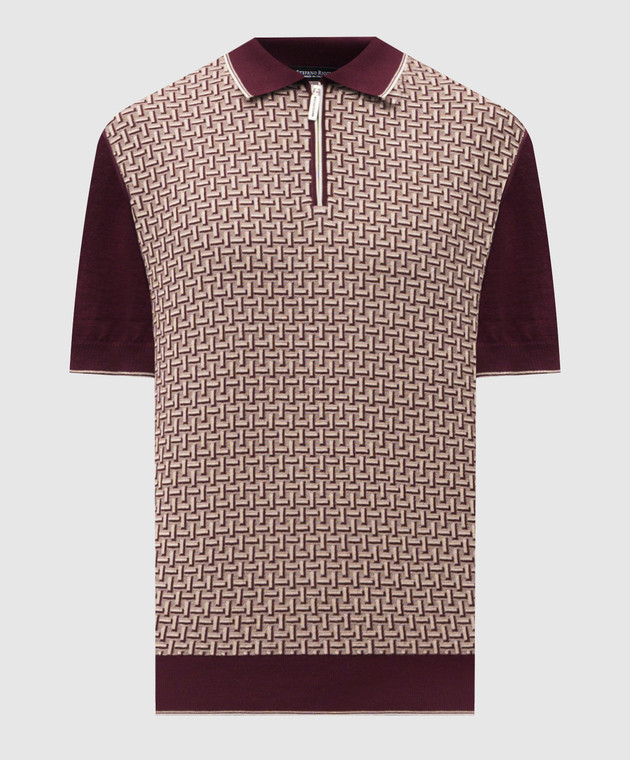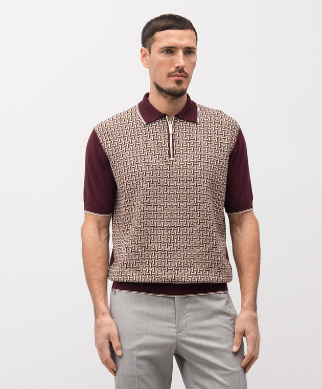 Бордовое поло с шелком в контрастный узор