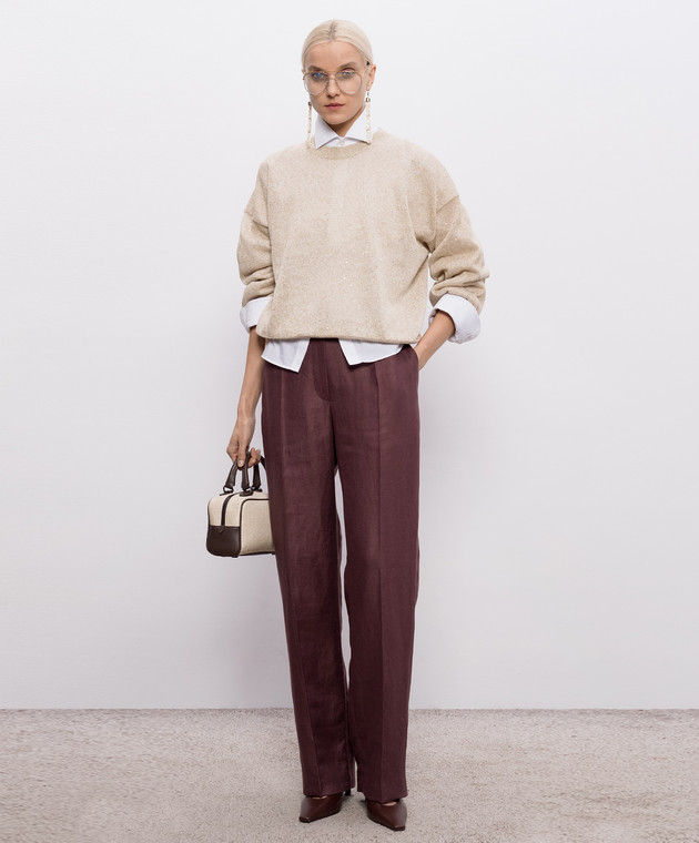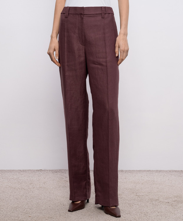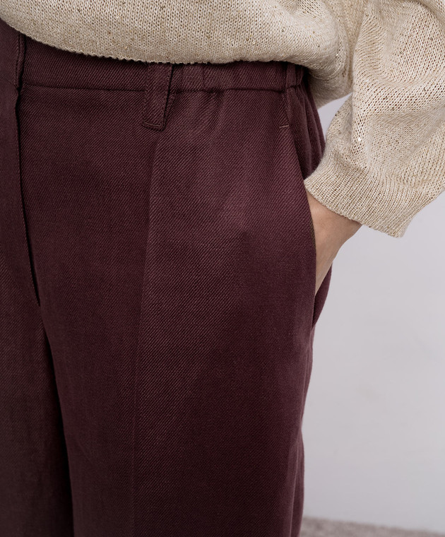 Бордовые брюки из льна