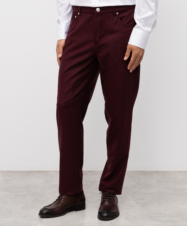 Бордовые брюки из шерсти с логотипом