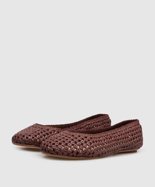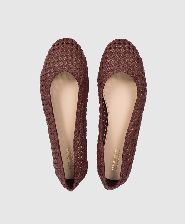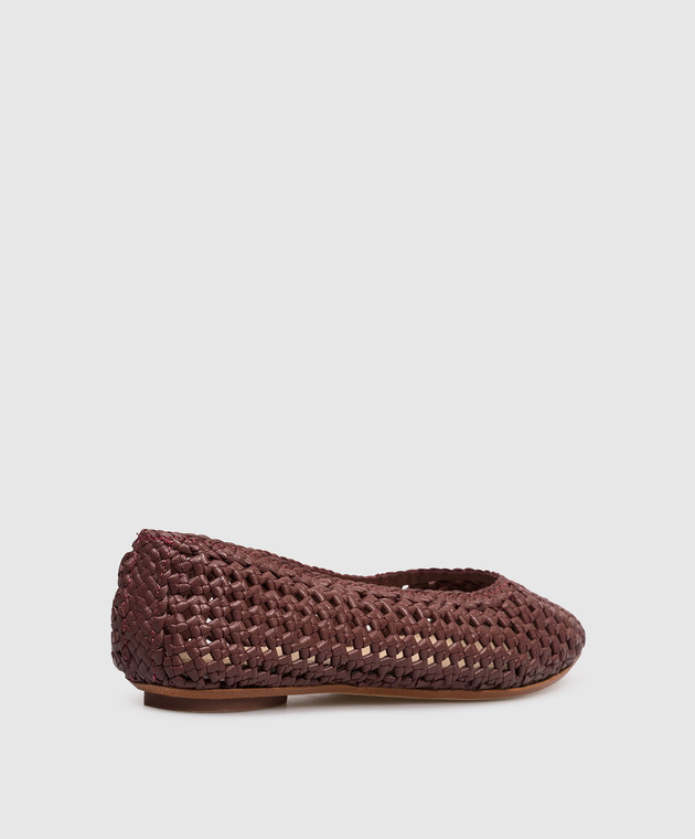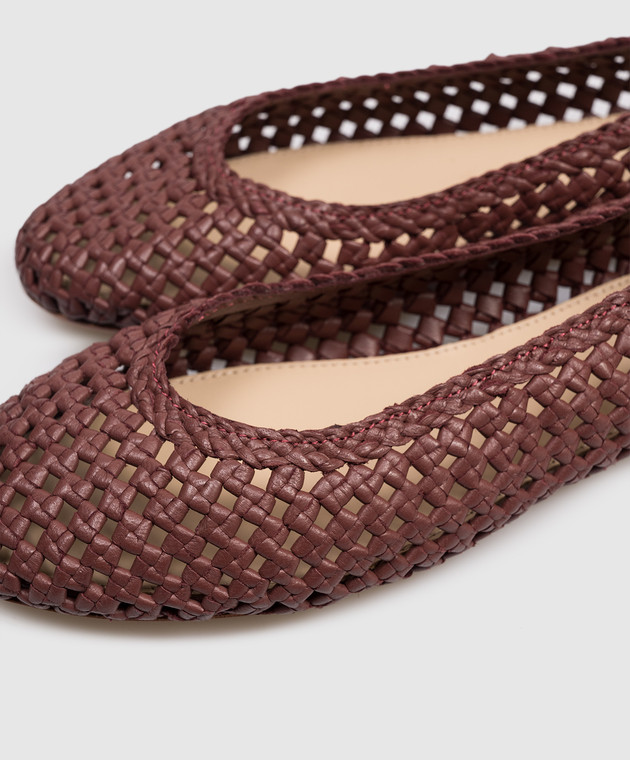 Бордовые кожаные плетеные балетки