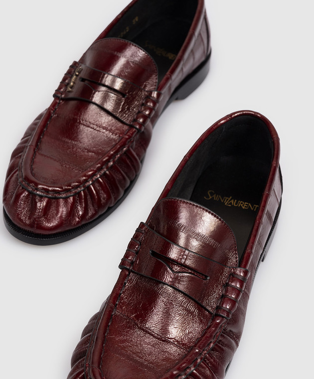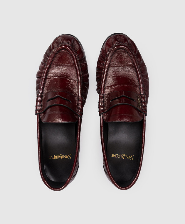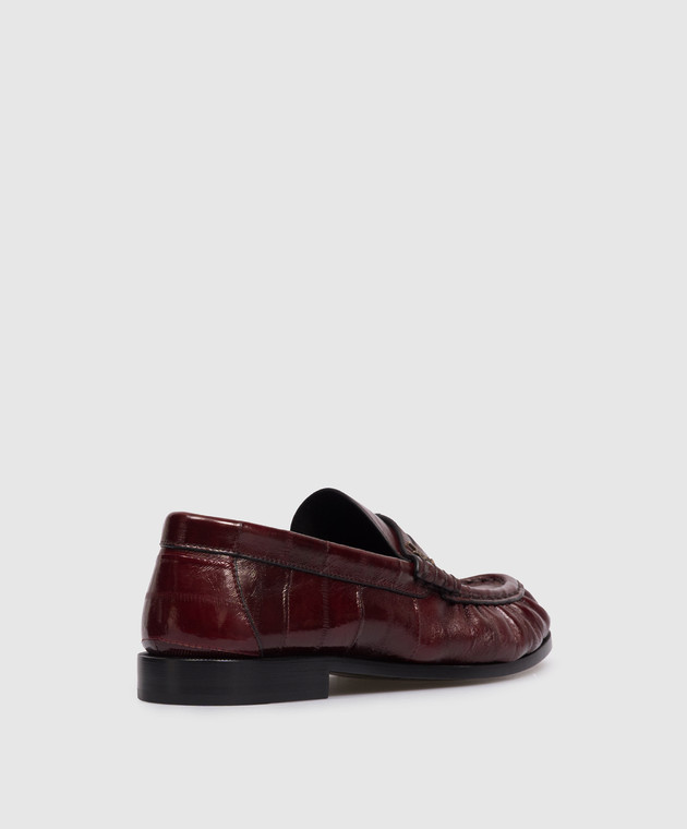 Бордовые лоферы из кожи угря с металлической монограммой