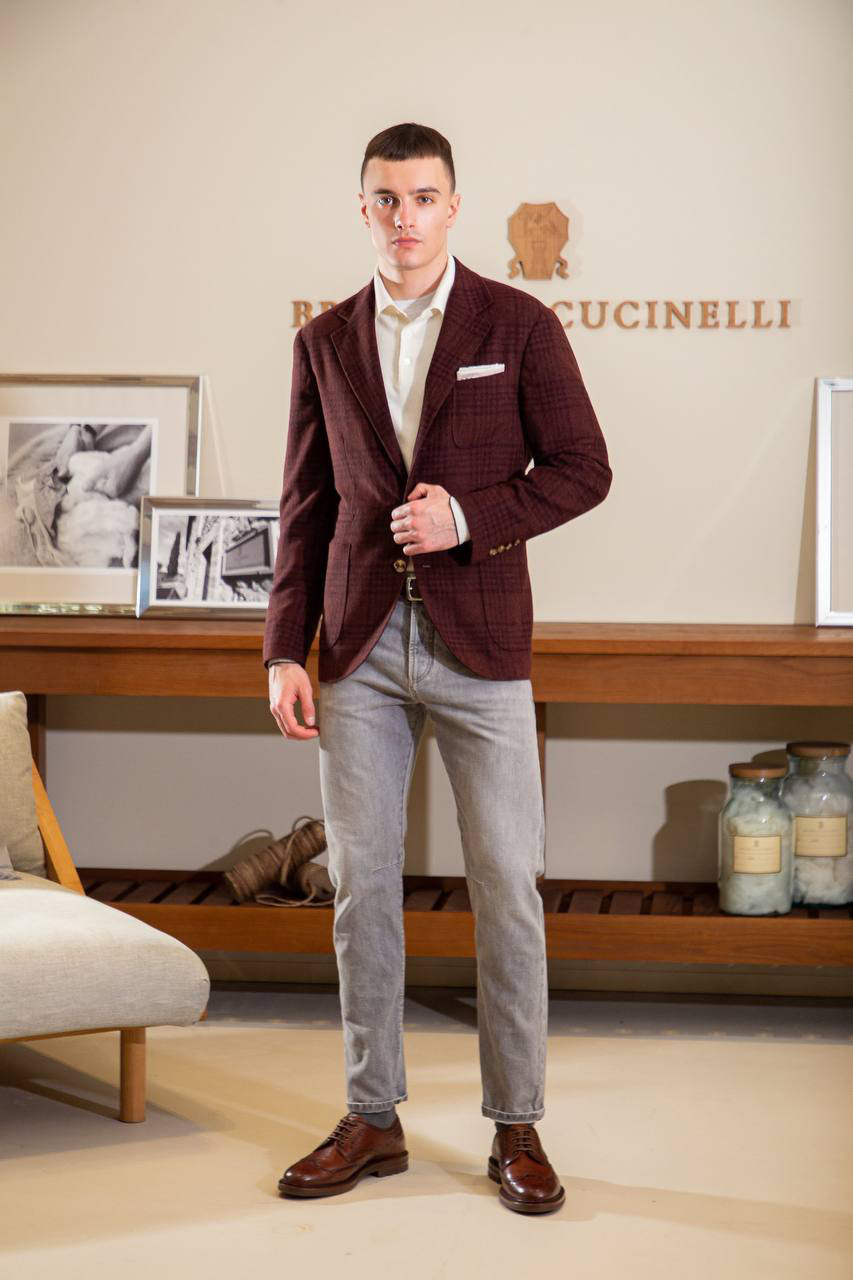 Бордовый блейзер из шерсти, шелка и кашемира в клетку