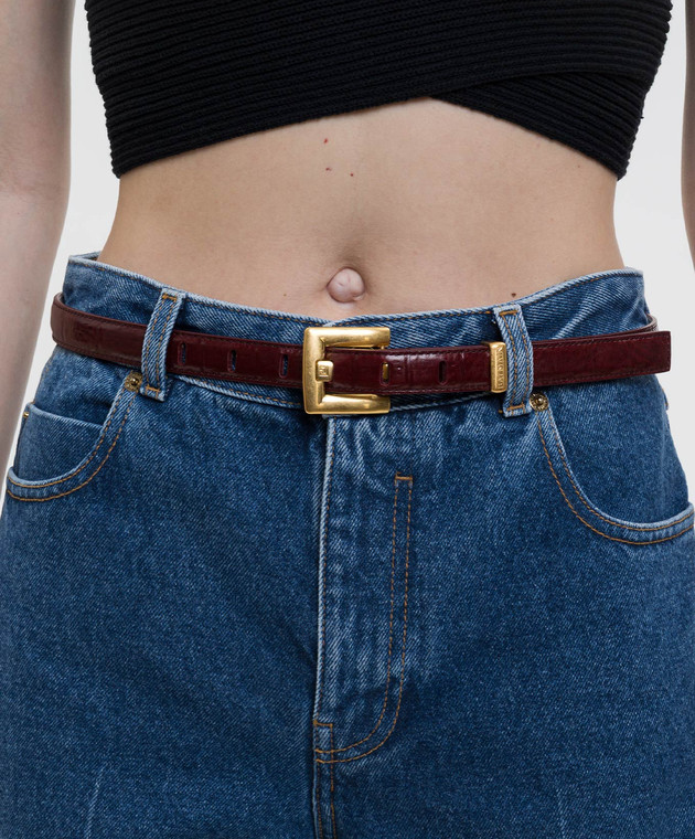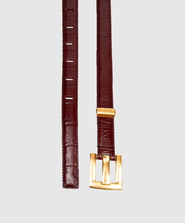 Бордовый кожаный пояс с тиснением под кожу крокодила