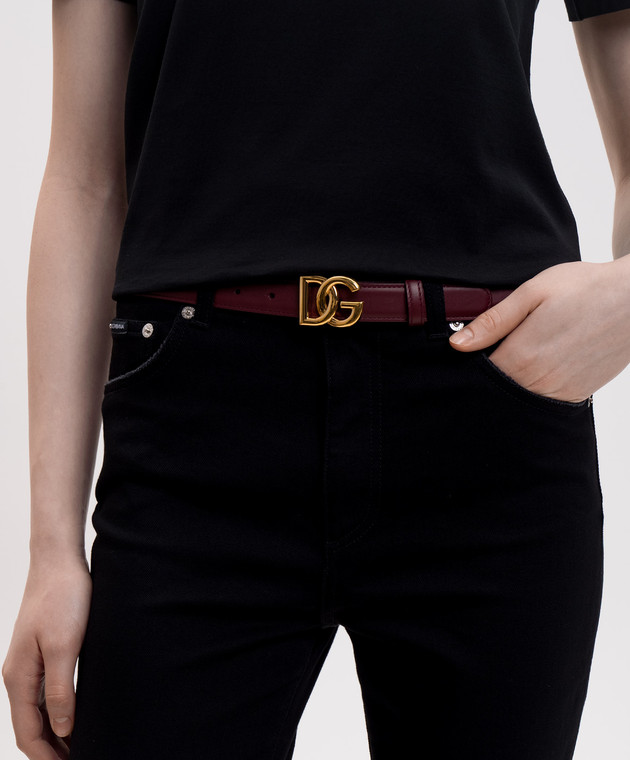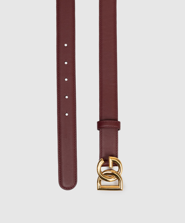 Бордовый кожаный ремень с логотипом