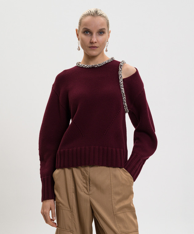 Бордовый свитер Monroe из шерсти и кашемира с кристаллами