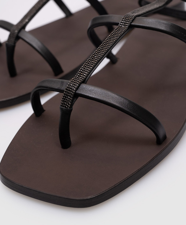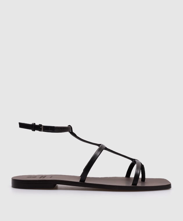Черные кожаные сандалии с цепочкой мониль