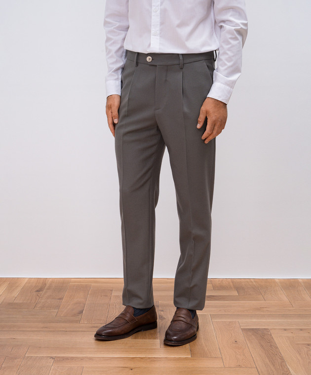 Брюки цвета хаки из шерсти