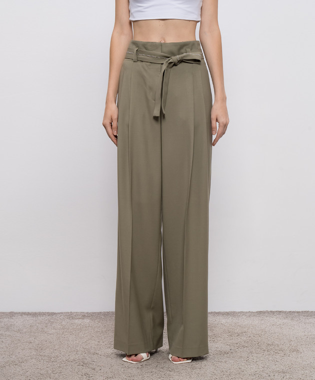 Брюки цвета хаки из шерсти