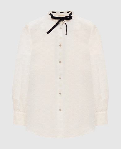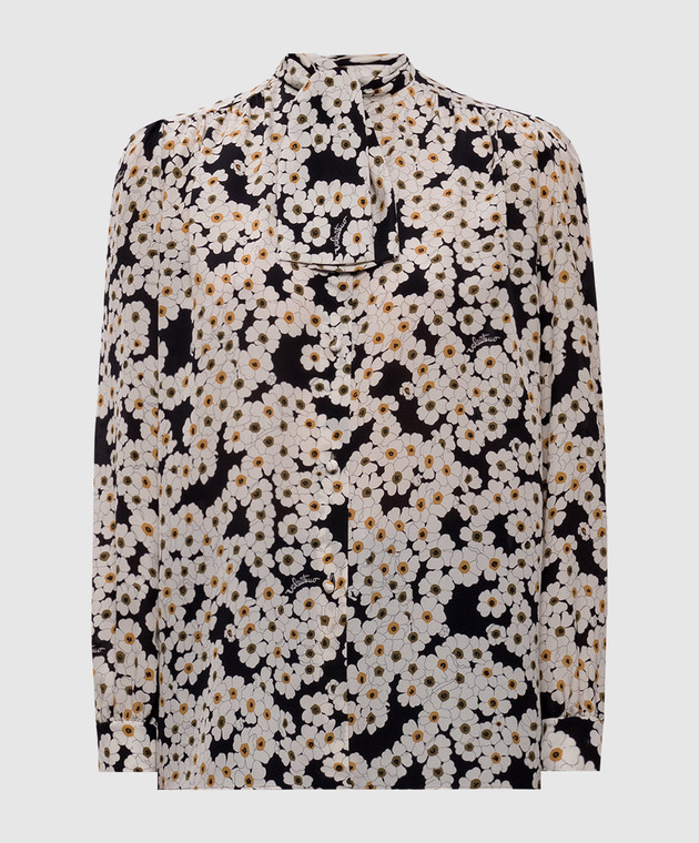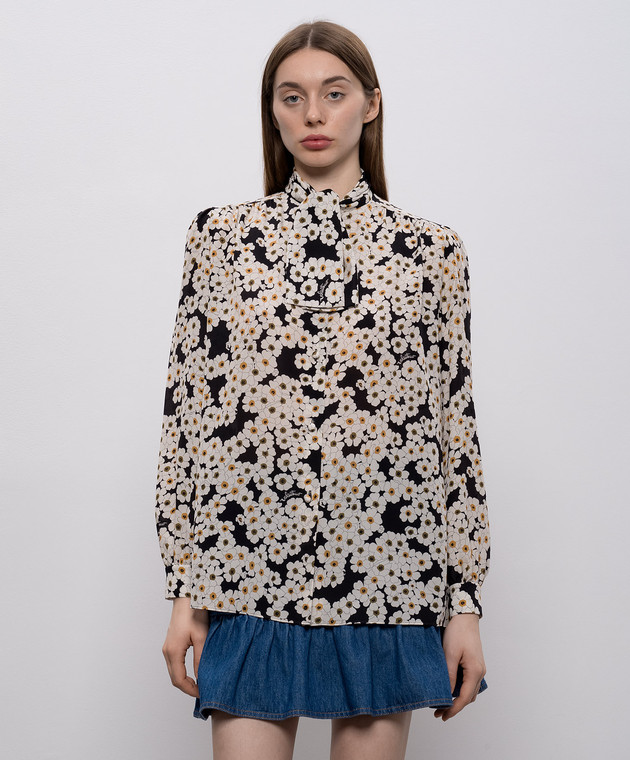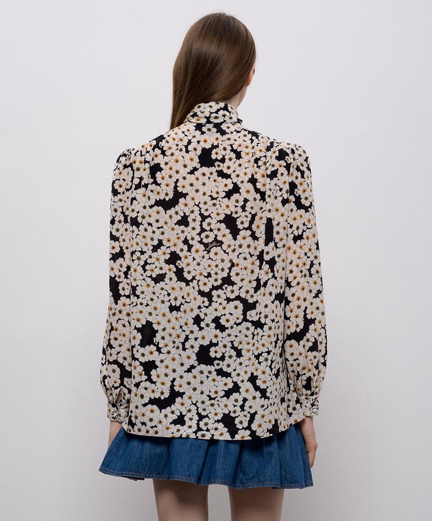 • Декор цветочный принт, фигурный низ, воротник-аскот.