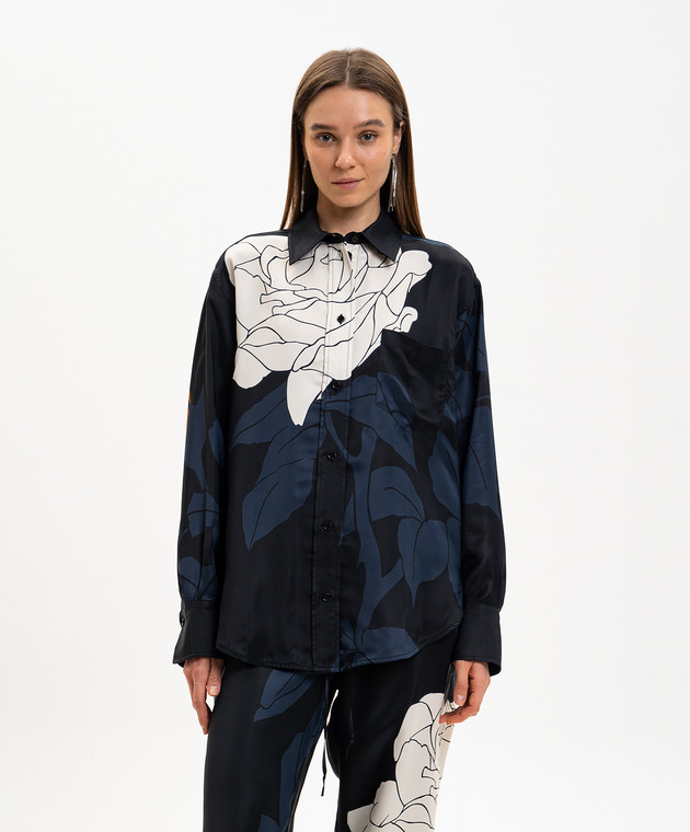 Черная блузка в цветочный принт