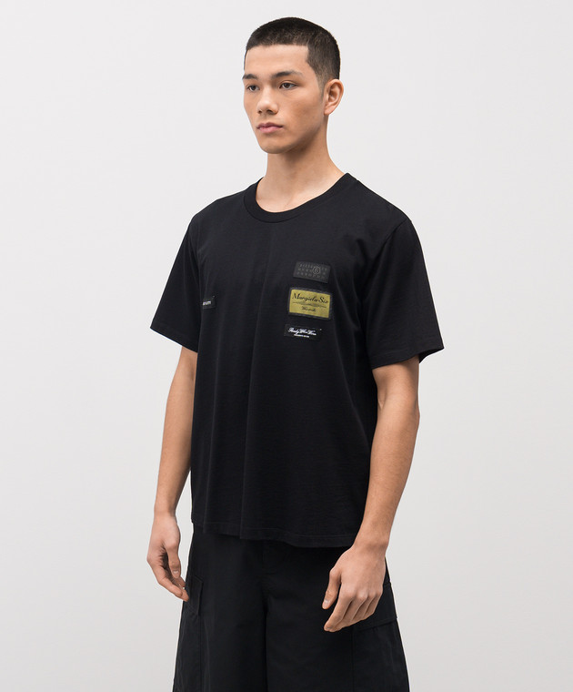 Черная футболка с брендовыми нашивками