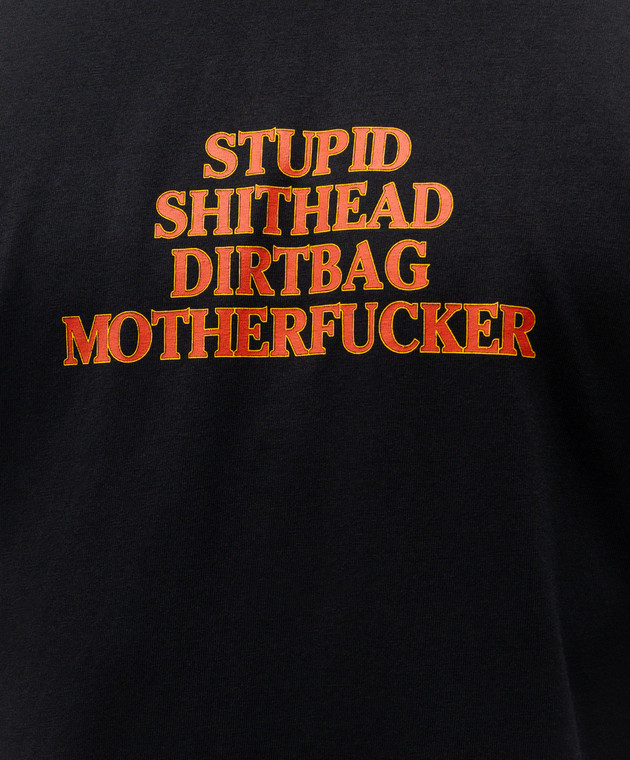 • Декор принт надписи "Stupid Shithead Dirtbag Motherfucker", вышивка логотипа в тон, эффект потертости