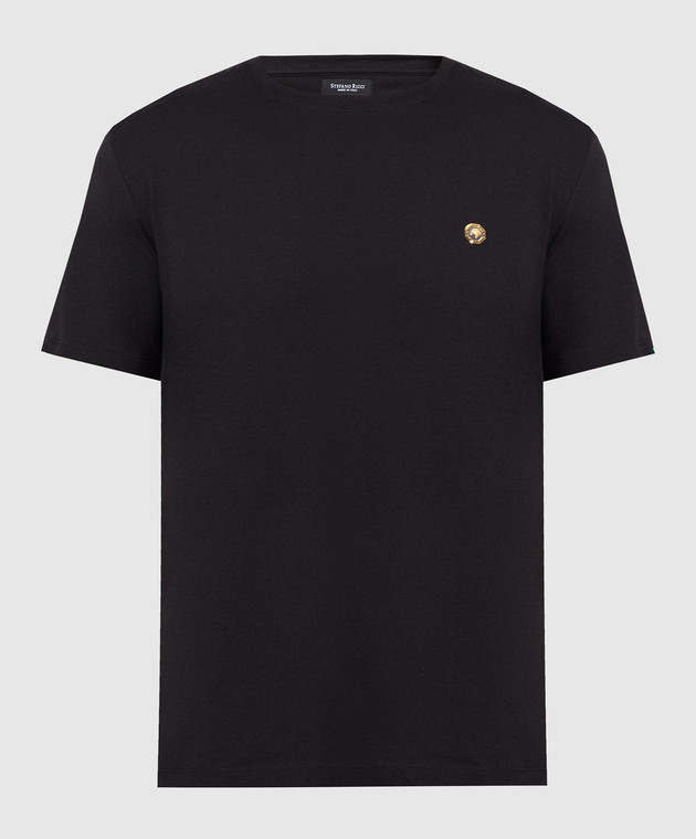 Черная футболка с металлическим логотипом