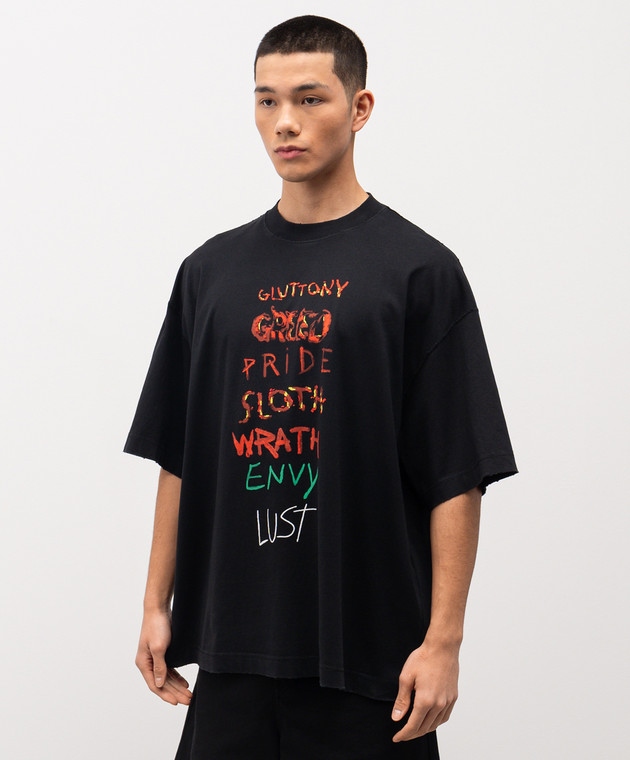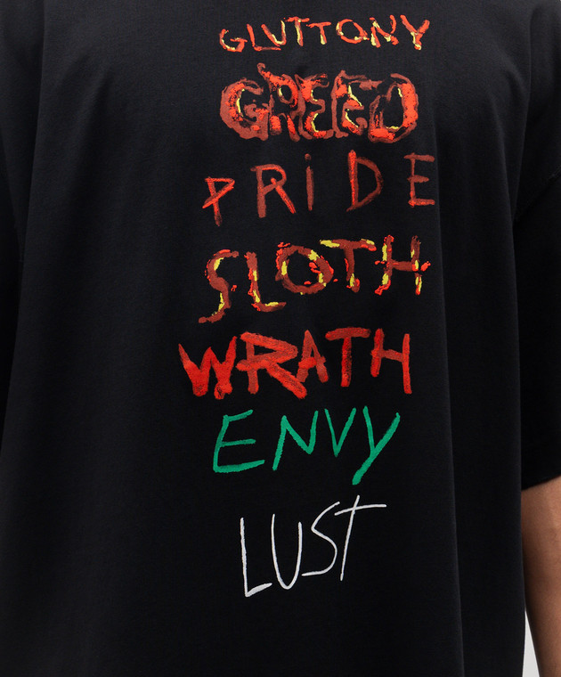 • Декор контрастный принт надписи "Gluttony Greed Pride Sloth Wrath Envy Lust", вышивка логотипа в тон, эффект потертости