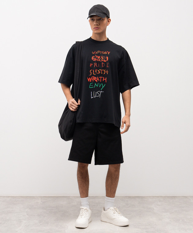 • Декор: контрастный принт надписи "Gluttony Greed Pride Sloth Wrath Envy Lust", вышивка логотипа в тон, эффект потертости