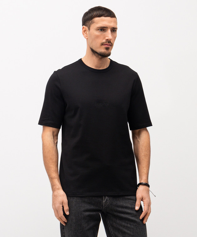 Черная футболка с вышивкой логотипа в тон
