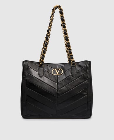 Черная глянцевая кожаная сумка с эмблемой