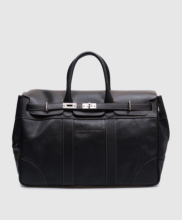 Черная кожаная дорожная сумка с логотипом
