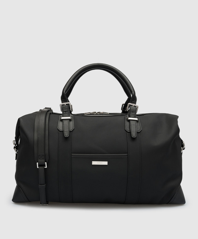 Черная кожаная дорожная сумка с логотипом