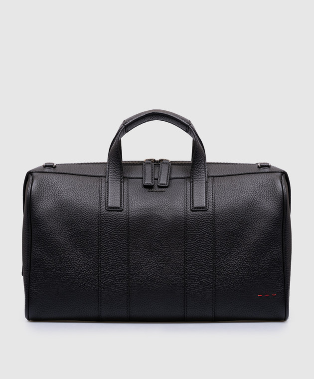 Черная кожаная дорожная сумка с логотипом