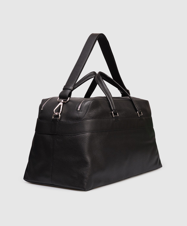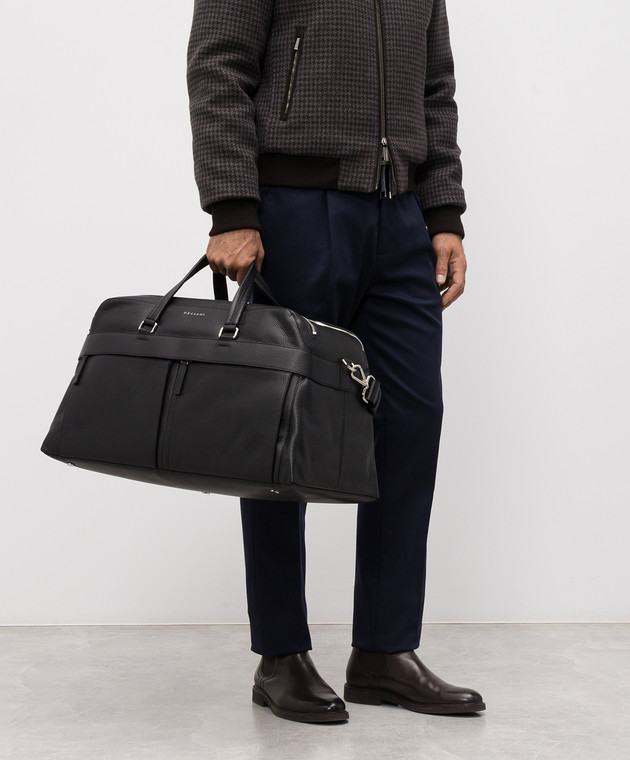 Черная кожаная дорожная сумка с логотипом