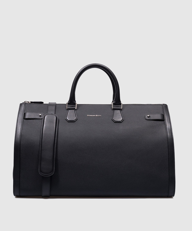 Черная кожаная дорожная сумка с логотипом