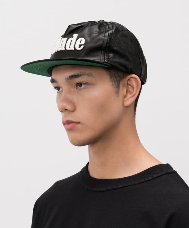 Черная кожаная кепка с вышивкой логотипа