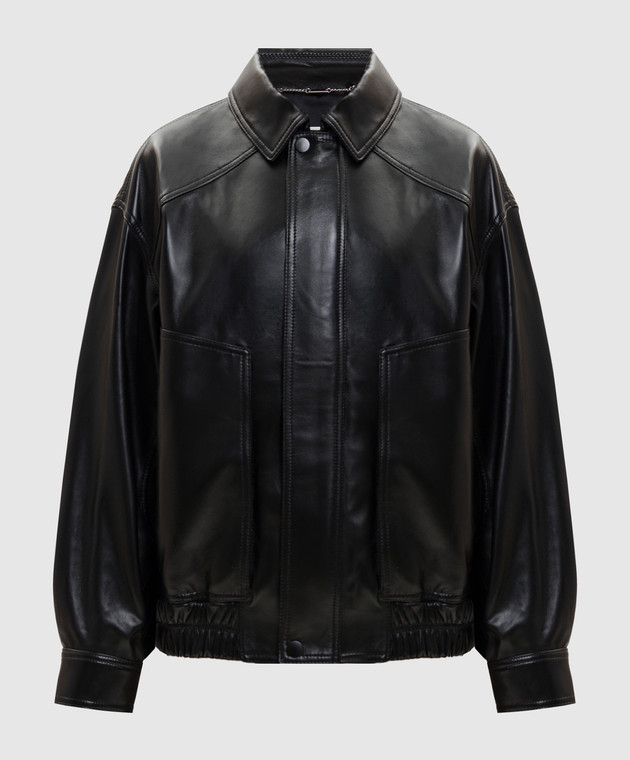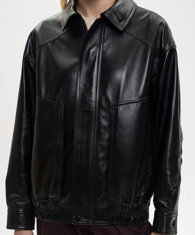 Черная кожаная куртка с драпировкой