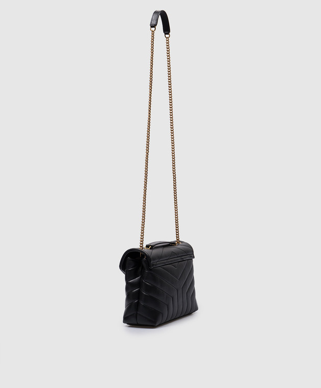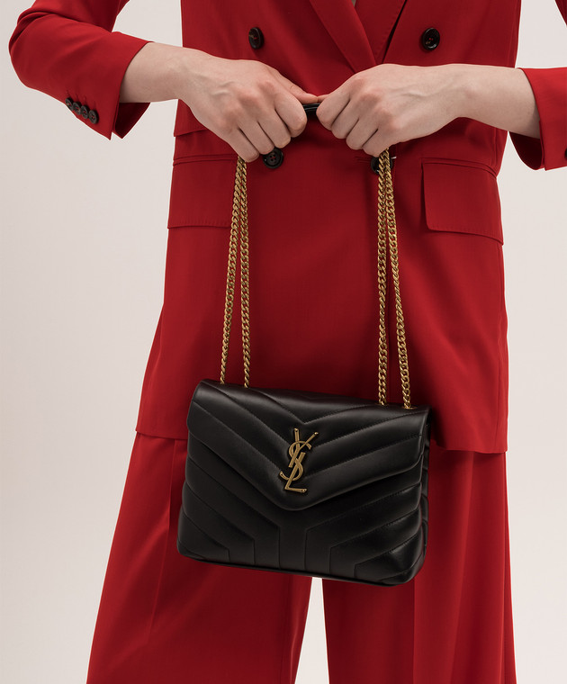 Черная кожаная стеганная сумка LOULOU с металлическим логотипом YSL