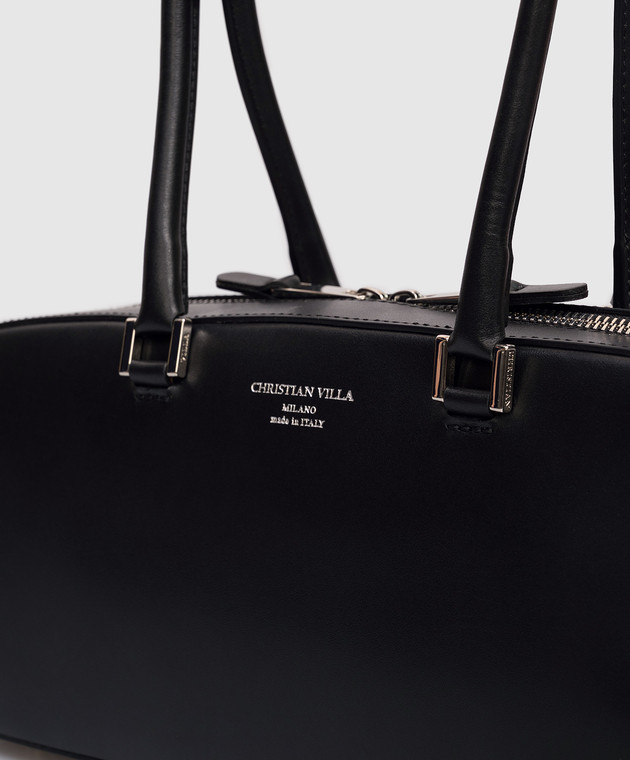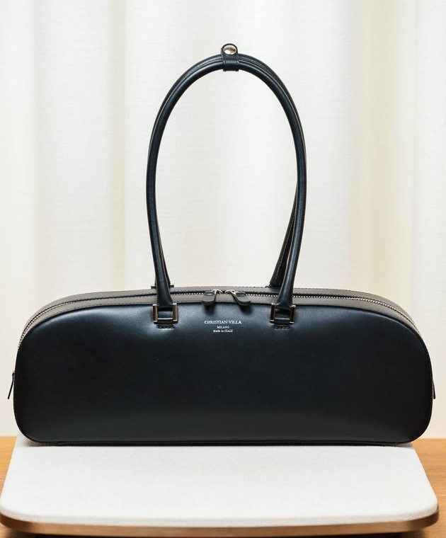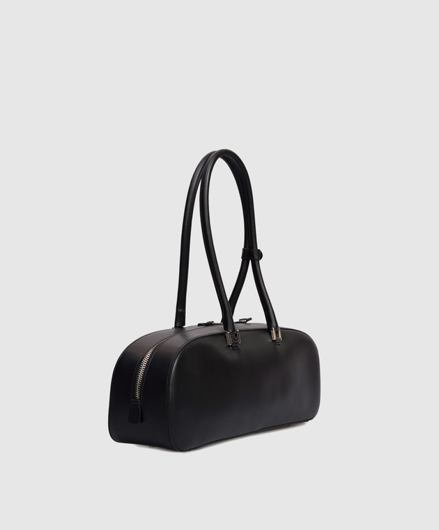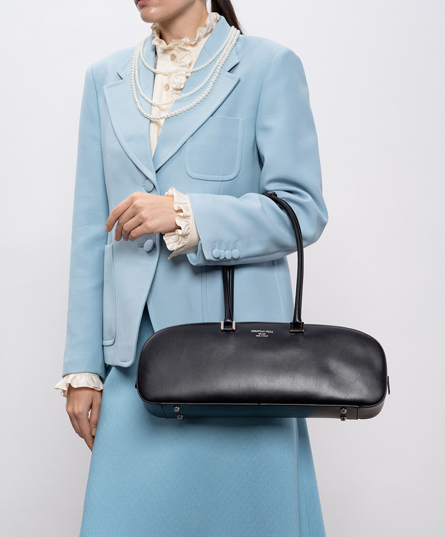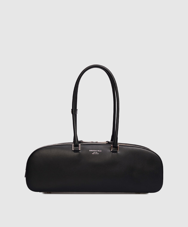 Черная кожаная сумка-багет с логотипом